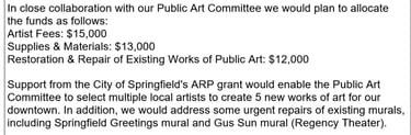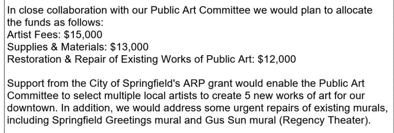 June 10, 2022: $40K in Miscellaneous services/funding grant for Arts, Culture, and Tourism (with American Rescue Plan Act (COVID ARPA) funds - see below picture**)