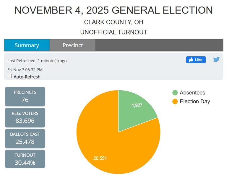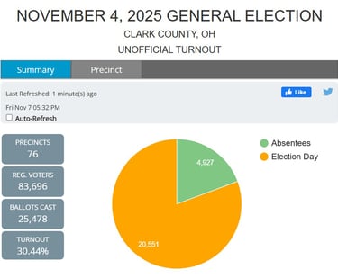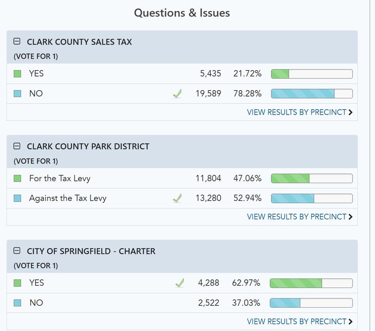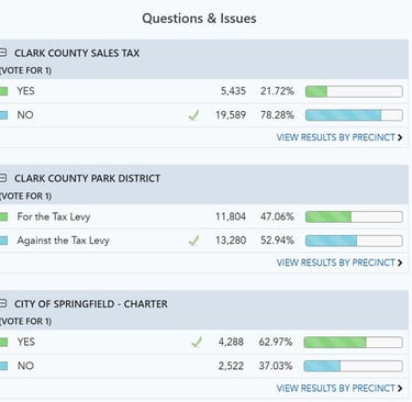 Once again, Clark County outdoes itself with record low voter turnout. 30%! County-wide. You know it was a lot less in the City of Springfield.