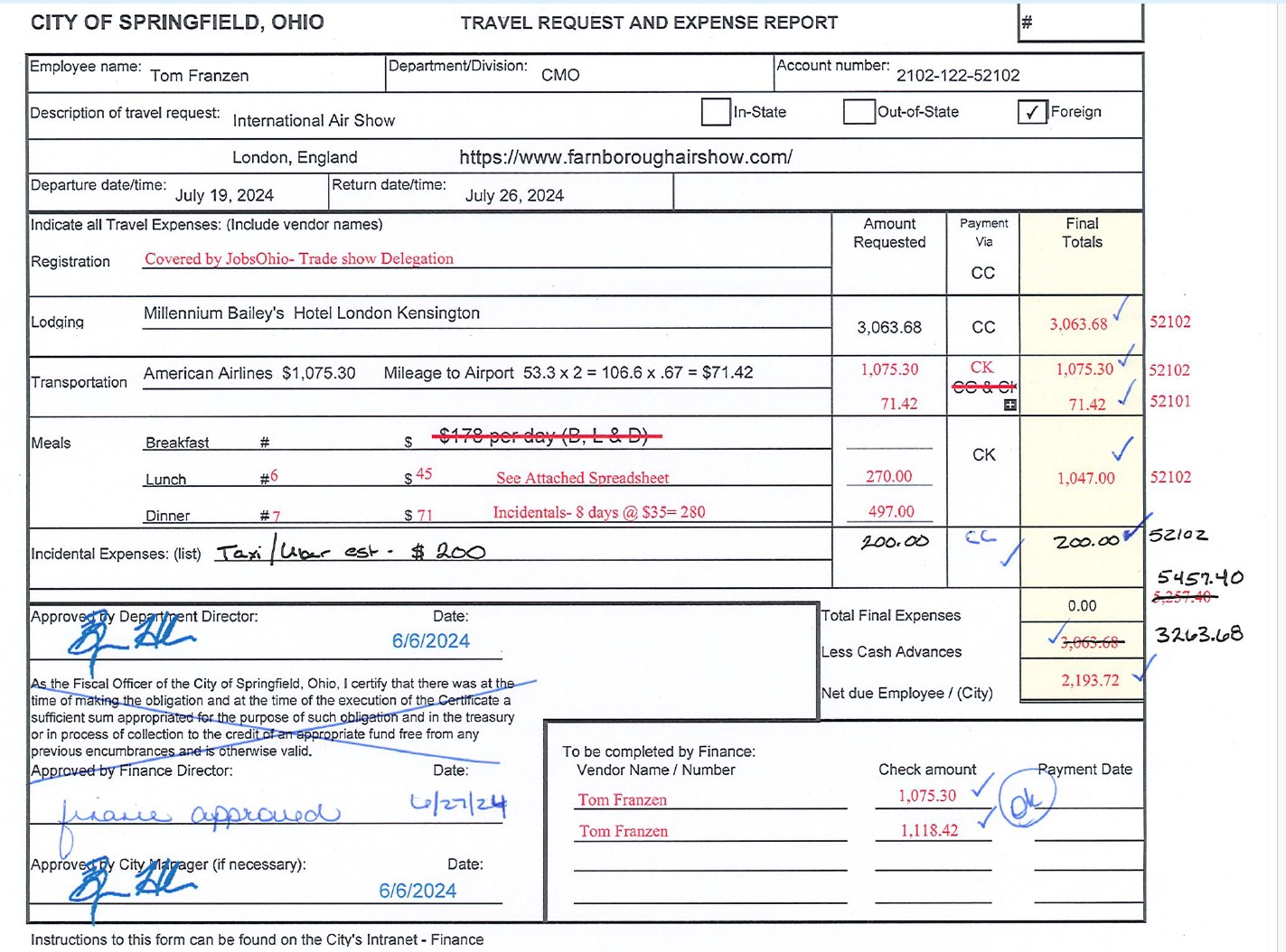 Update December 2025: Apparently, this Paris trip to an airshow isn't the first. The year before Heck and Franzen and wives went to an airshow in London. Request for receipts made.