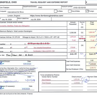The National Advanced Air Mobility Center of Excellence built at the Springfield airport. And to celebrate, a city government trip to Paris. Tthen, another "air" trip in 2024 to London, England.