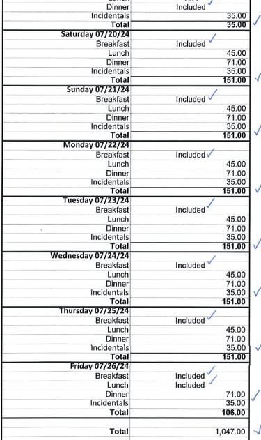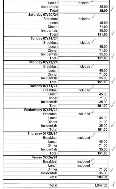 He estimated incidental uber fees at $200 and they approved the estimate.